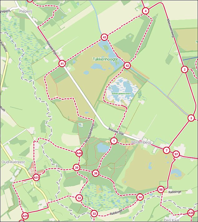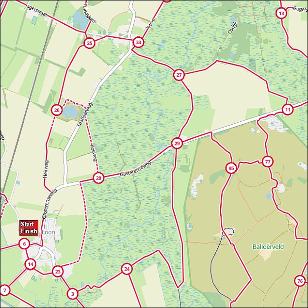 Het is een bewegwijzerde route door bos en hei tussen Exloo en Odoorn. Je ziet overblijfselen van de ijstijden o.a.de Leewal. Dat is een esker, een 4 m hoge smeltwaterrug.