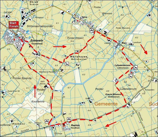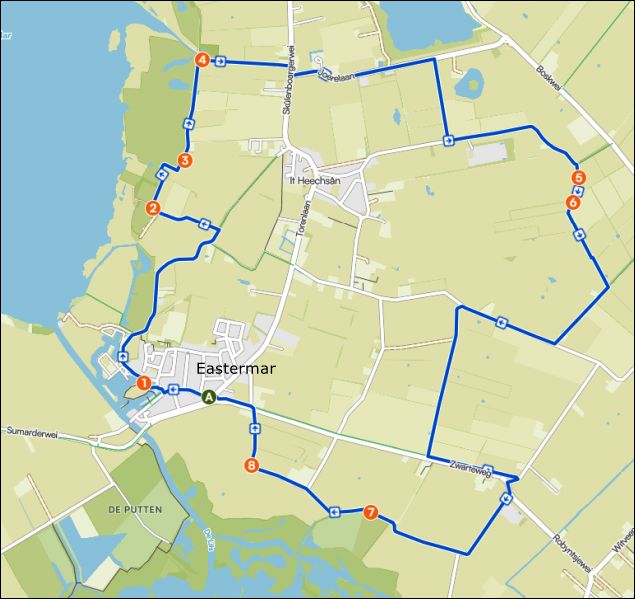 In bomen gehulde terpdorpjes zorgen voor de accenten in een weids gebied van gras en kronkelige sloten. Je komt door de beschermde dorpsgezichten van Easterein, Rien en Lytsewierrum. Je volgt paden door boerenland met veeroosters en smalle bruggetjes, daarnaast rustige asfaltweggetjes. Geniet volop van rust en ruimte, natuur en cultuur.
