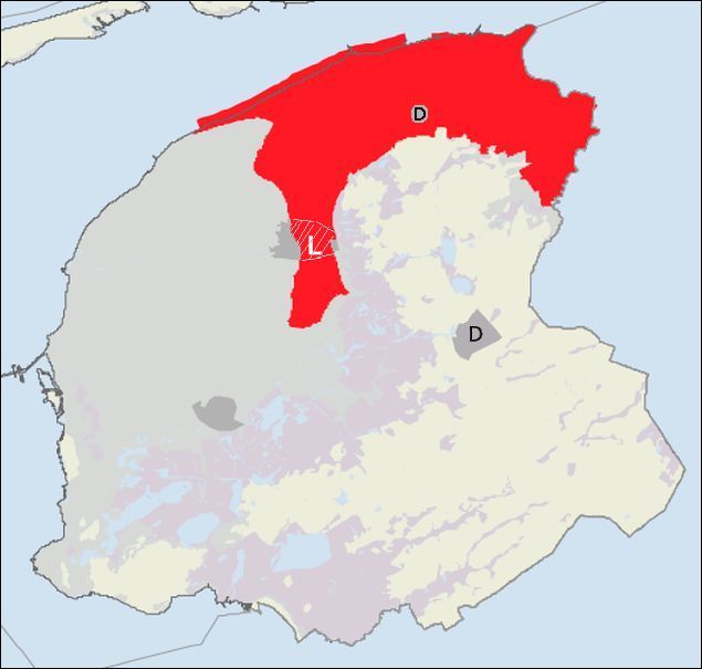 - Noordwestelijk Oostergo: de kwelderwal die ten noorden van Leeuwarden in een boog doorloopt tot iets voorbij Ternaard, inclusief de ten zuiden daarvan gelegen voormalige kweldervlakte en de daarachter gelegen klei-op-veengronden.