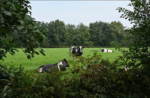 Het is nog steeds een mooi landschap, maar “De bonte wei” van Jac.P.Thysse bestaat hier niet meer. Onder je voeten overal raaigras en mest. Ook verscheen er al een perceel met mais tegen het einde van de wandeling.