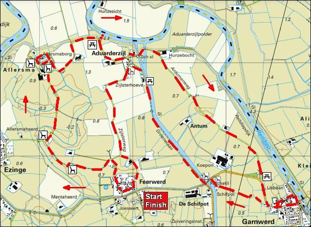 Klik bij de gewenste route op kaart. De kaart opent vervolgens op de website Afstandmeten.nl.