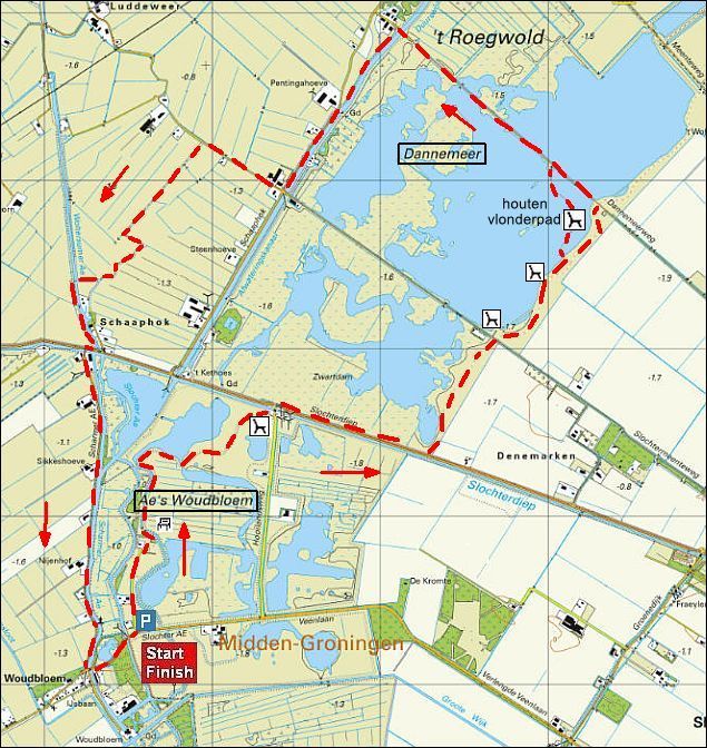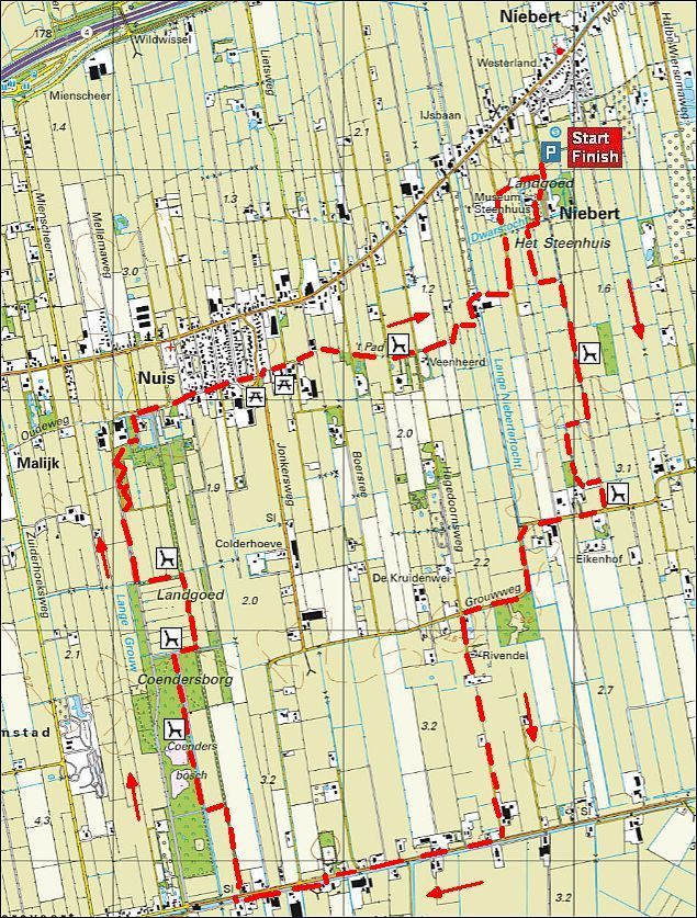 Deze wandeling valt grotendeels samen met het goed gemarkeerde Westerwoldepad. Enkele afwijkende korte stukjes kun je gemakkelijk m.b.v. bovenstaande kaart lopen.