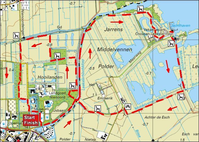 De route loopt langs het Leekstermeer, deels over graspaden. Langs het meer kom je ook horeca tegen.