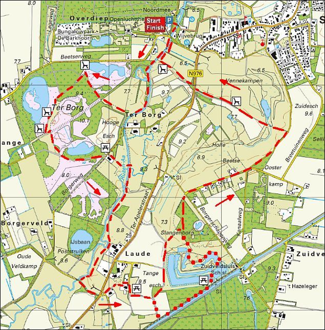 Na een pad langs de Ruiten Aa maken we een lus over de heide. Vervolgens steken we bij de zuidelijkste boerderij van het esgehucht Ter Borg de Ruiten Aa over en lopen aan de oostzijde zuidwaarts. Het is een zeer afwisselend en kleinschalig gebied.