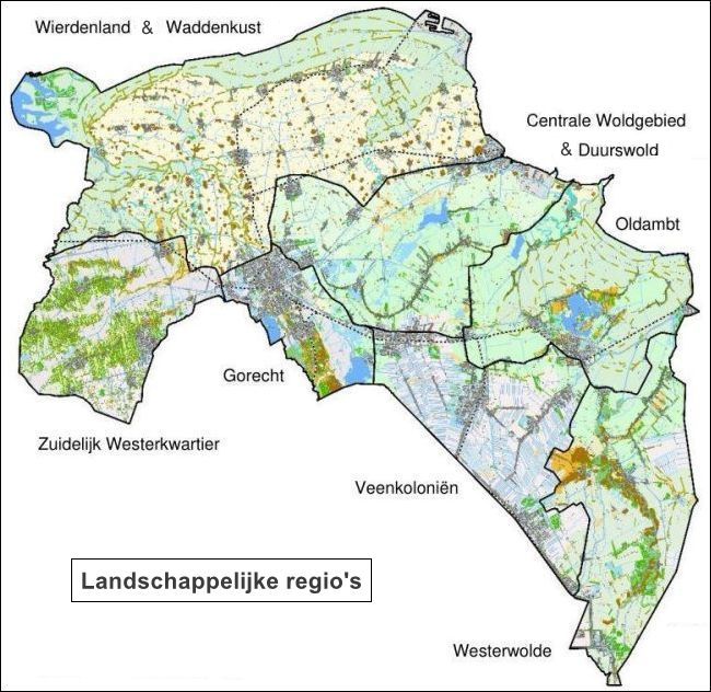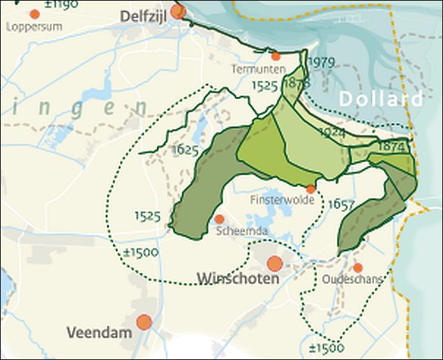 Dit deelgebied omvat de volgende twee landschappen: wierdenlandschap (geel op de kaart) en dijkenlandschap (lichtgroen).