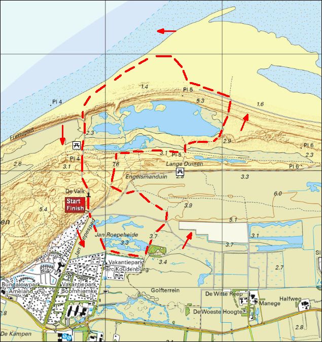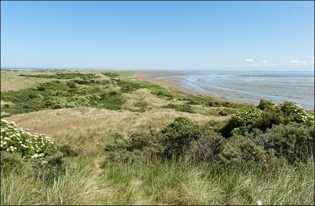 Deze wandeling rondt het voormalige eiland en voert je van Waddenzee naar Noordzee en weer terug. Onderweg passeer je bloemrijke duinvalleien en vogelrijke kwelders, vind je vlinders op de warme zuidhellingen van de duinen, wandel je langs de kleiige rand van de Waddenzee en over het uitgestrekte zandstrand van de Noordzee.