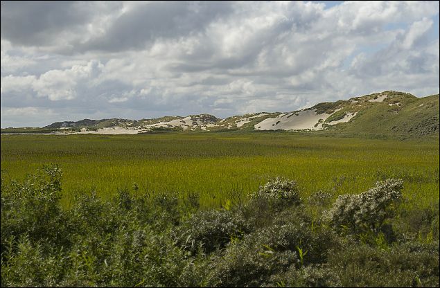 Midden in het gebied ligt een voormalige strandvlakte, afgesnoerd van de zee, waar zich een groot duinmeer heeft gevormd, omzoomd door riet. Deze vallei is bijzonder rijk aan vogels en dankzij de vogelkijkhut bovendien goed te overzien.