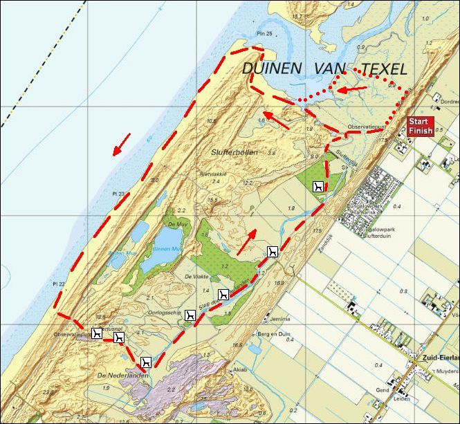Tot 1835 was de noordpunt van Texel een apart eiland: Eierland. In de broedtijd wemelde het hier van eidereenden en meeuwen. De Texelaars gebruikten het gebied vooral om eieren te rapen, vandaar de naam. Tegenwoordig is Eierland nog altijd een bijzondere plek voor vogelliefhebbers. De nadruk ligt minder op broedvogels. Er broeden nog steeds veel meeuwen, maar de aandacht gaat vooral uit naar de vogeltrek. Het is een van de beste plekken in Nederland om dwaalgasten en zeldzame doortrekkers te zien. De beste tijd om deze route te lopen is dan ook het voorjaar en het najaar.